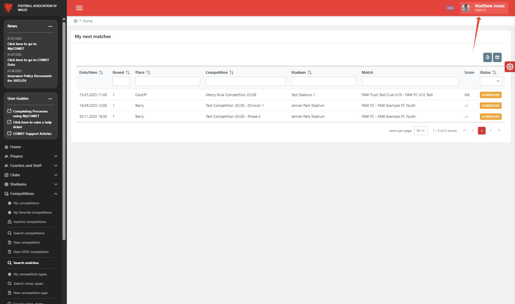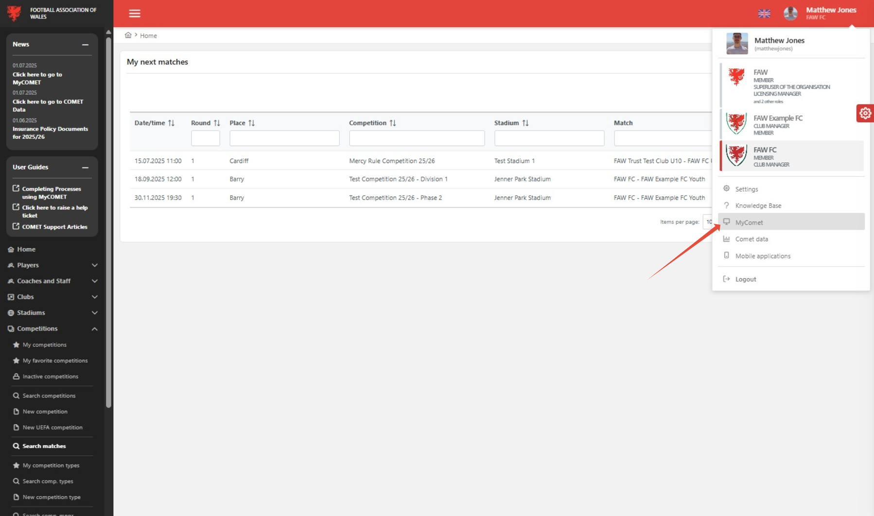 1. Click on Name in top right of page (you can skip this step if you are already on MyCOMET)
