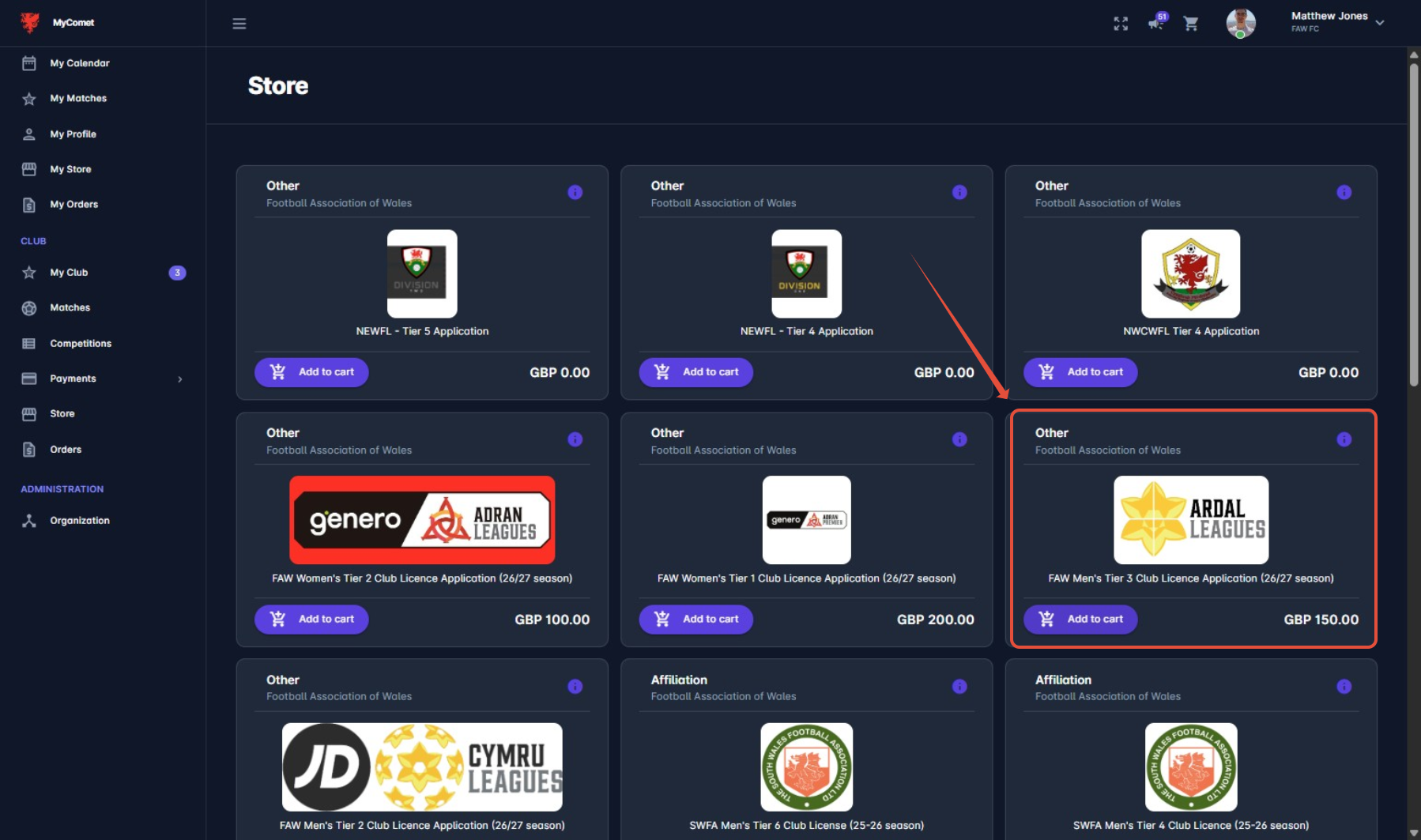 The following guide explains how to start the application for FAW Tier 3 Licensing. The first step is to purchase the relevant product on MyCOMET.